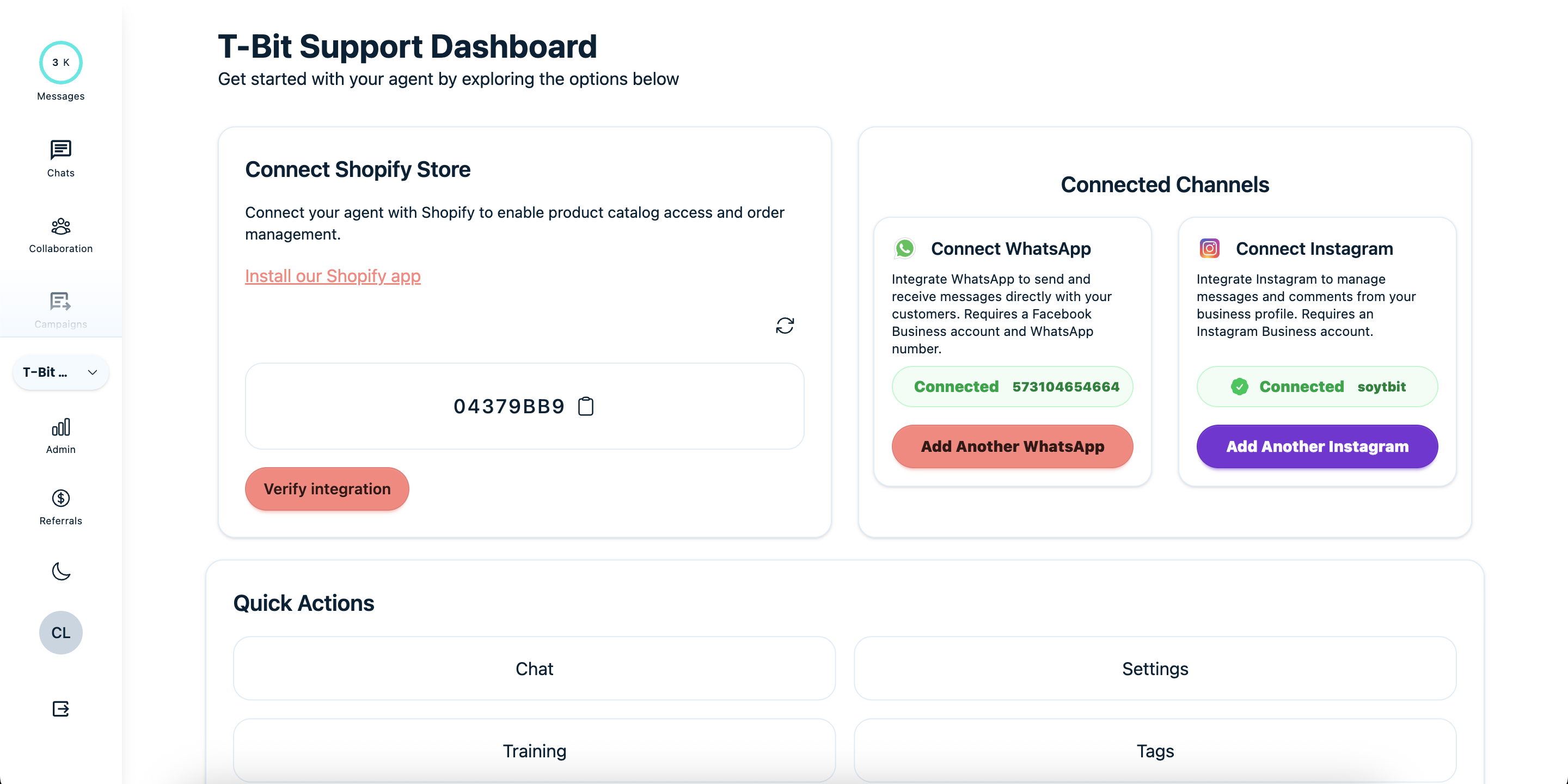 - Channels Supported: WhatsApp, Instagram, Telegram, Facebook